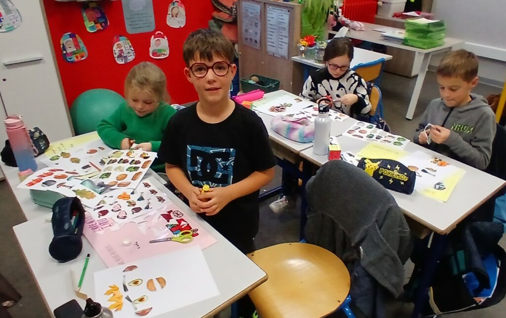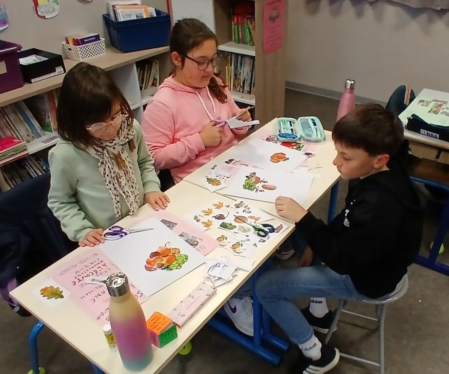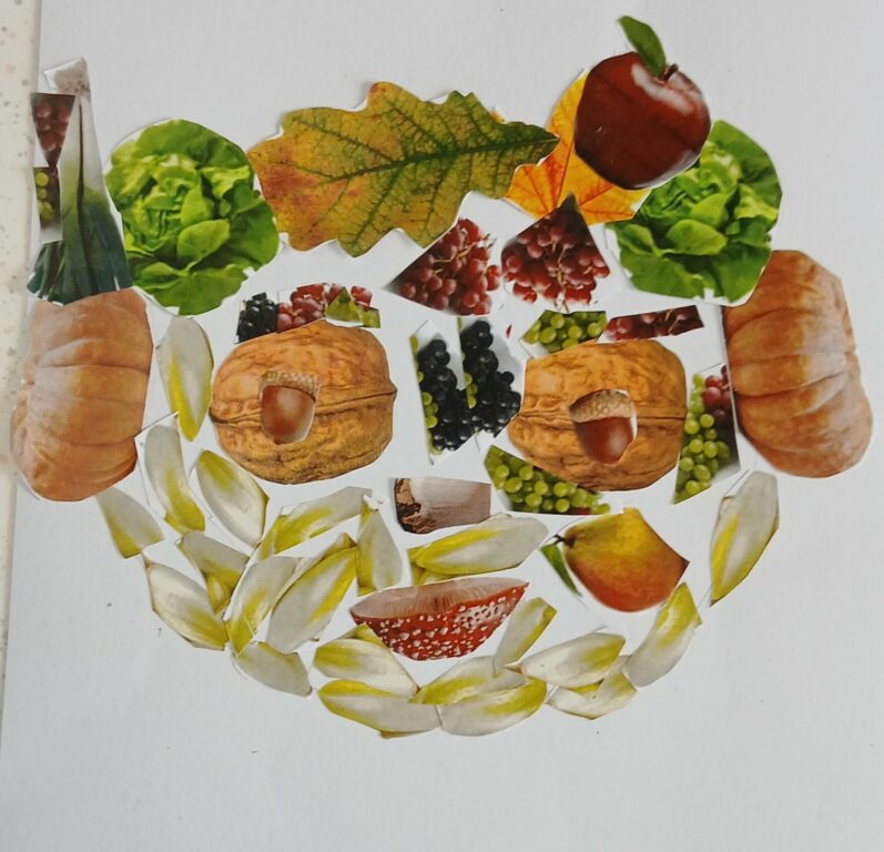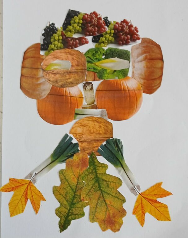 En histoire de l’art, nous étudions des œuvres qui sont aussi des supports pour nos dictées. Cette semaine, nous avons découvert le travail d’un artiste Italien: Guiseppe Arcimboldo. Nous nous en sommes inspirés pour réaliser des portraits d’automne…