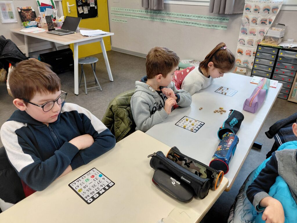 Afin de réviser les nombres jusqu’à 99, les enfants ont participé à une partie de loto! De quoi mêler jeux et apprentissages !