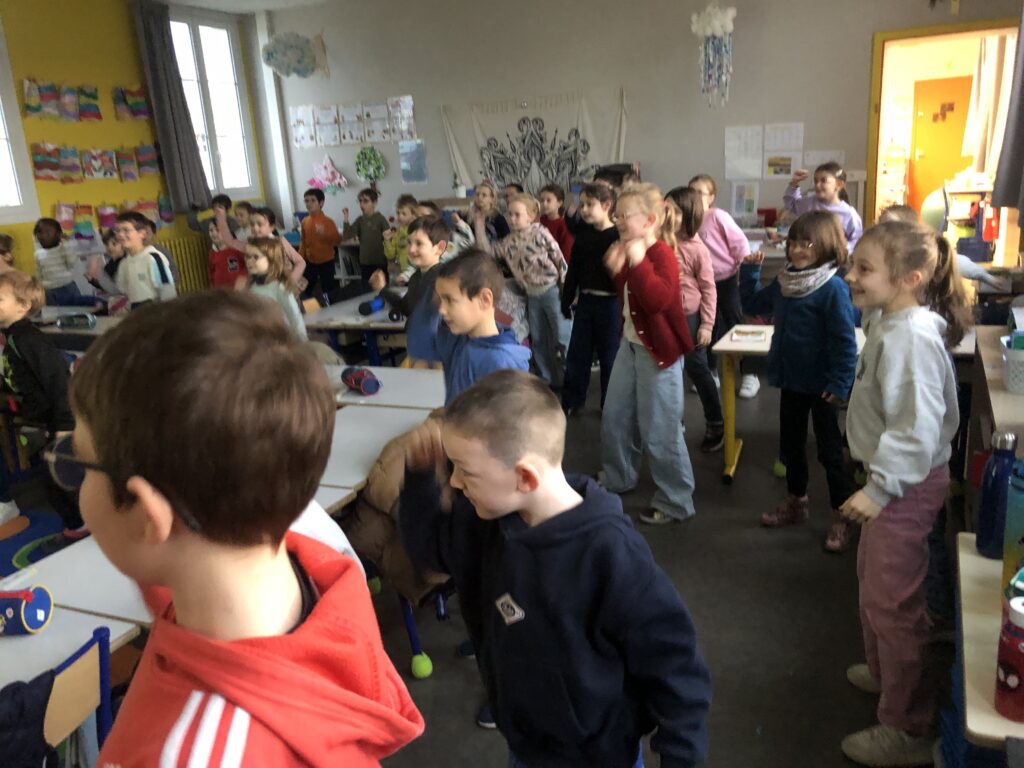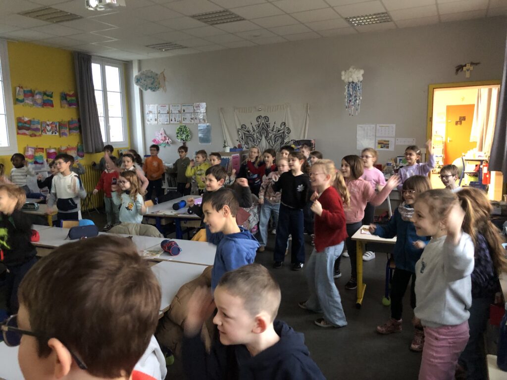 Vendredi dernier, les CP nous ont invité à participer à leur danse du vendredi matin.