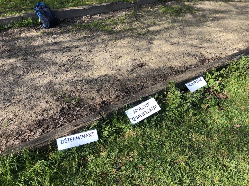 Afin de revoir les différentes natures de mots vues avant les vacances, nous avons joué au relais des natures..sous un beau ciel bleu !