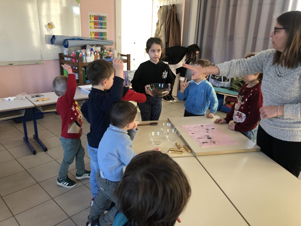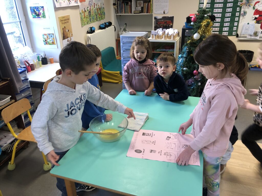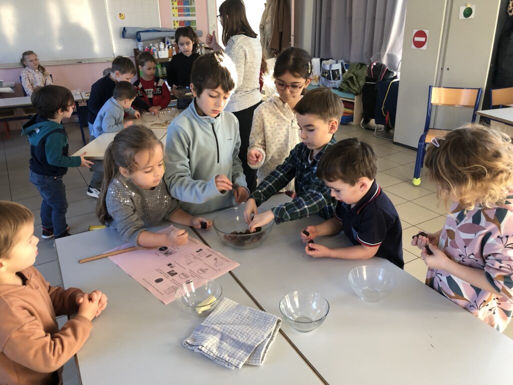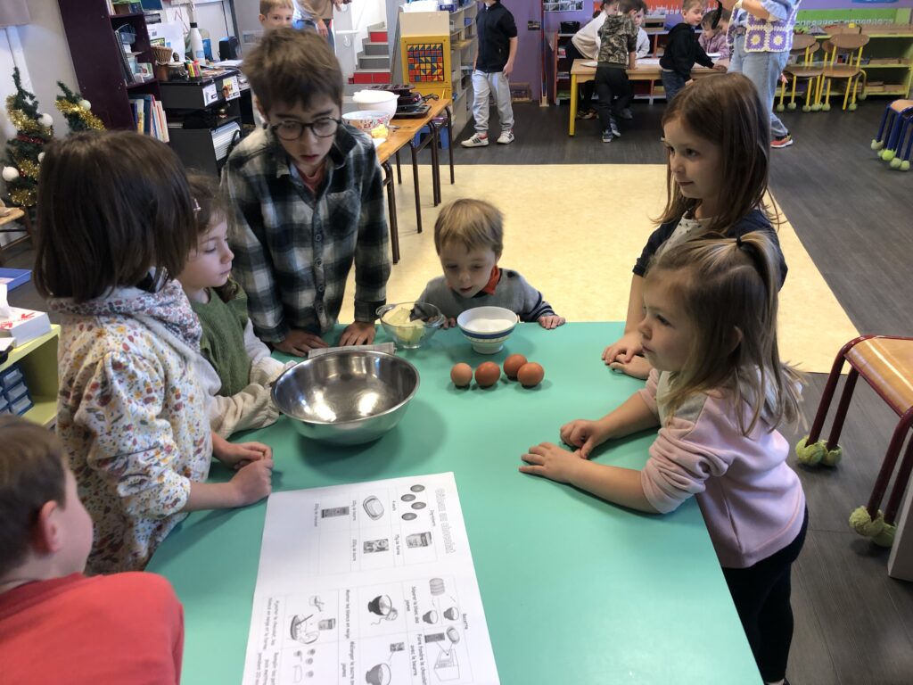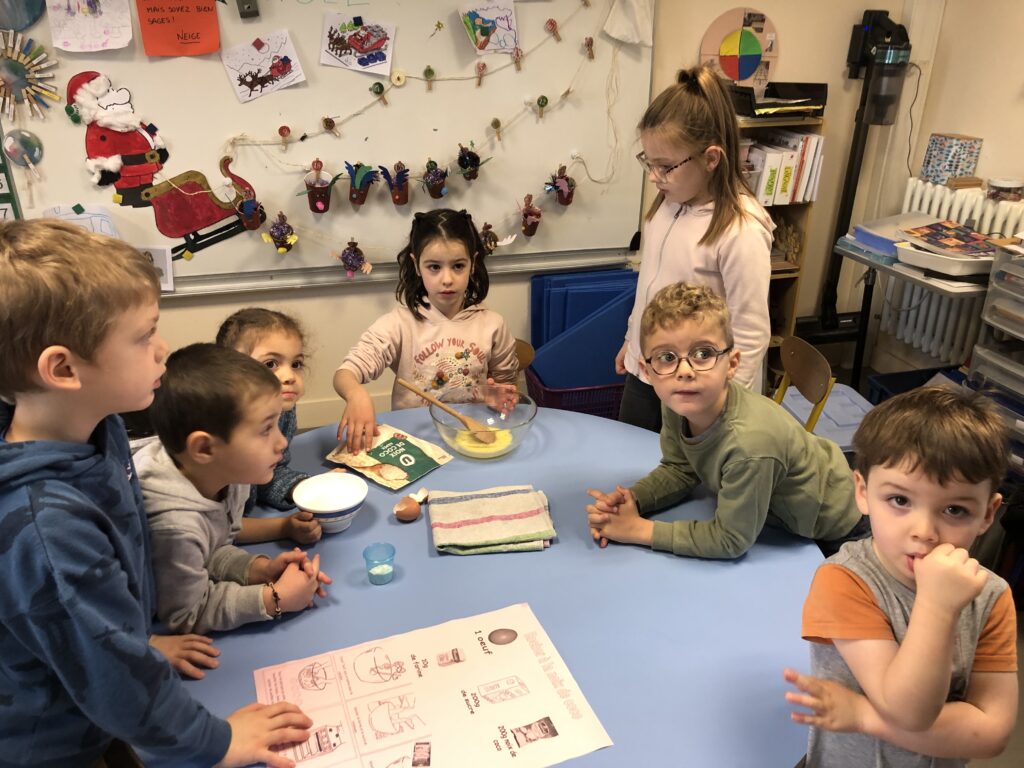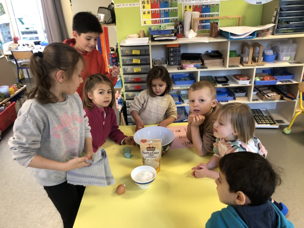Lundi nous sommes allés aider les classes de maternelle à préparer les gâteaux des anniversaires.