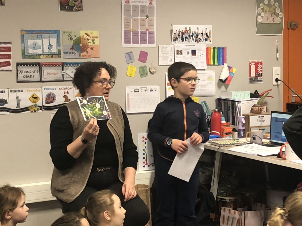 La classe de Laurence est venue ce matin nous apporter une carte de vœux.