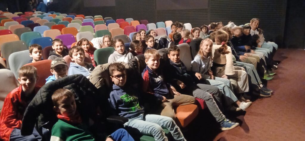 Les élèves de CE2-CM1-CM2 sont allés à la salle du Piment à Mortagne sur Sèvre. Ils ont eu la chance d’assister à un conte musical intitulé “Même pas peur” ! Ils ont tous beaucoup apprécié le spectacle !