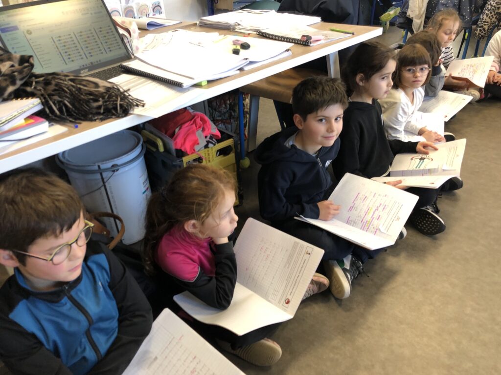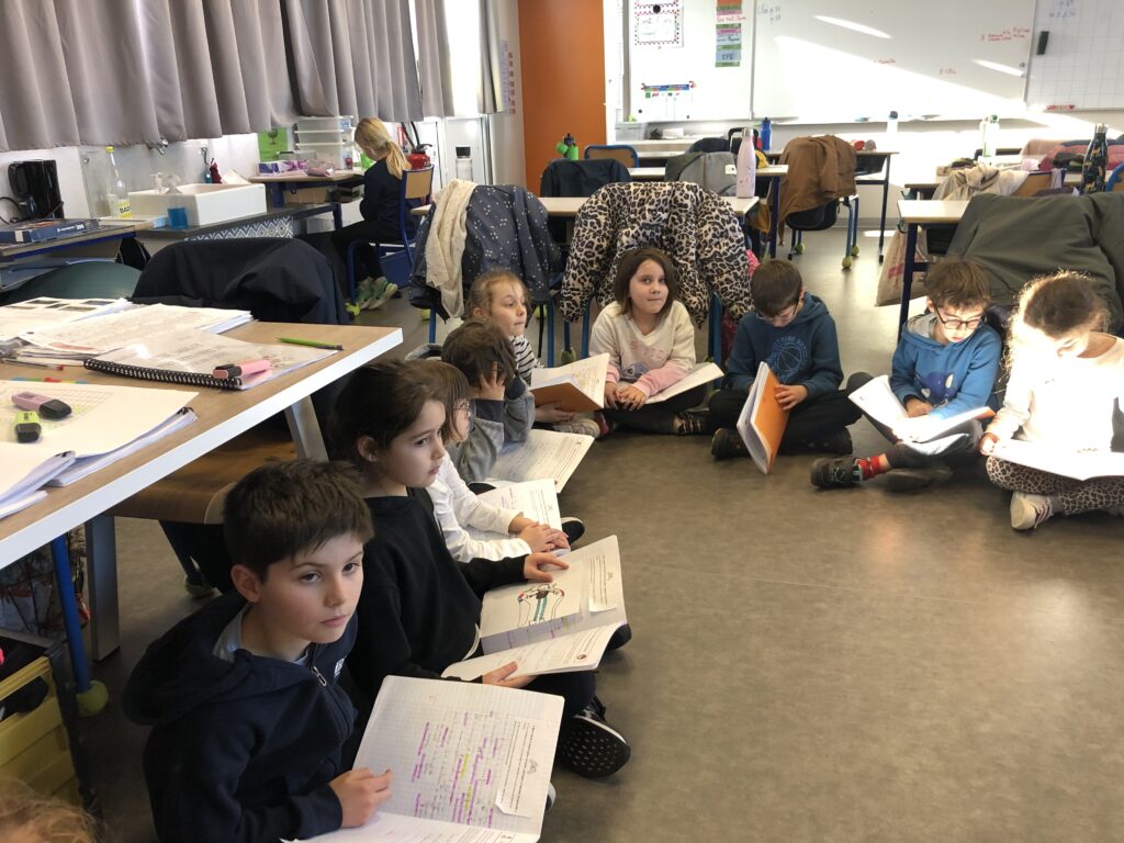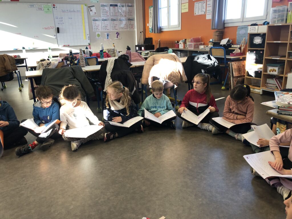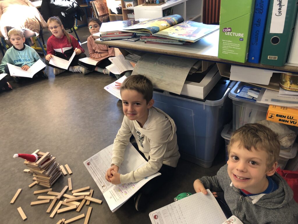 Nous avons donc lu nos souhaits à la classe en présence de Neige qui s’était cachée dans les kaplas !