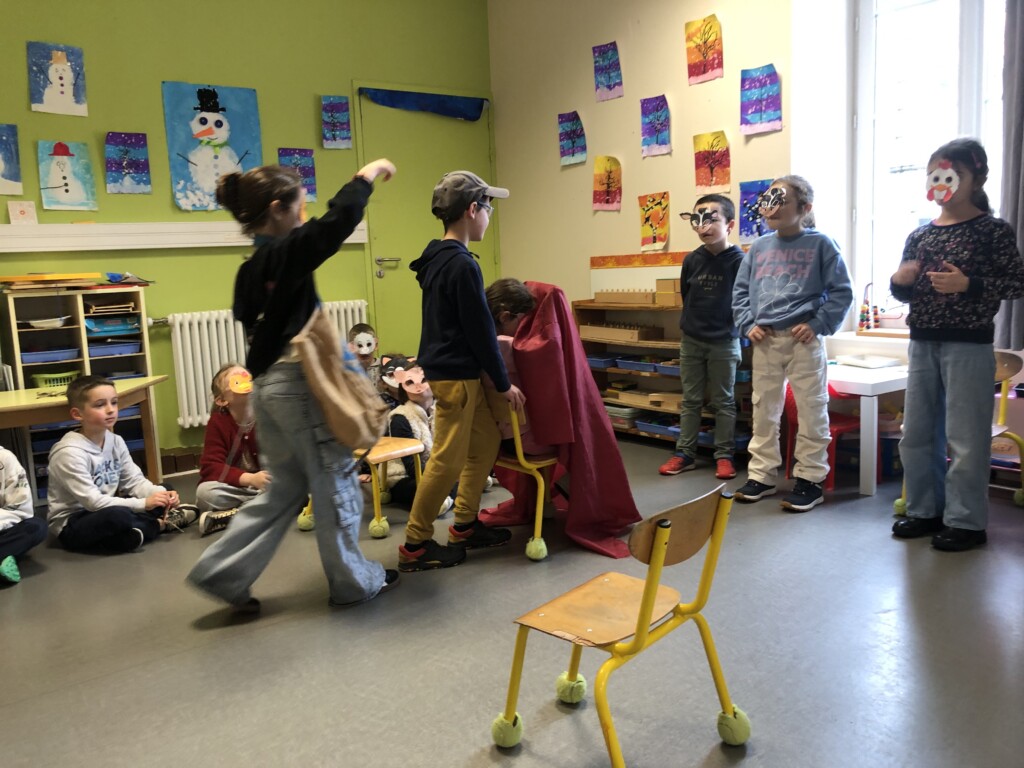 Etant binôme avec la classe de Laurence, nous sommes allés jouer cette histoire dans leur classe. Nous avons également montré notre pièce aux classes de Nadège et Malvina. Nous avons passé un très bon moment et sommes fiers de nous !!