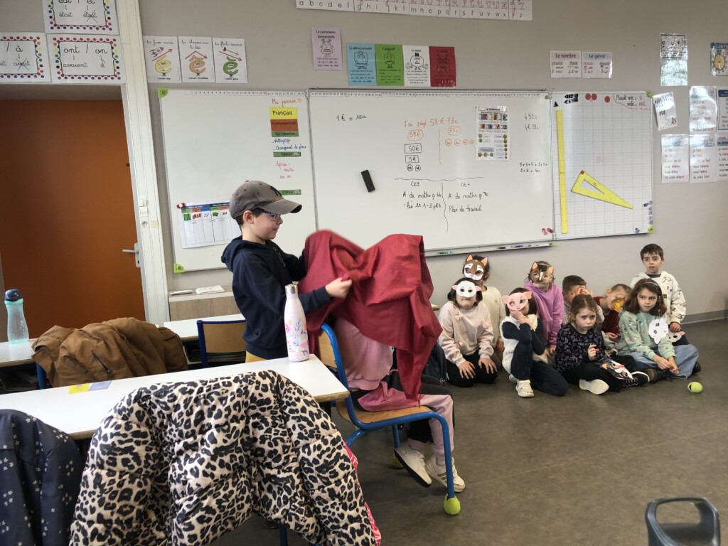 Etant binôme avec la classe de Laurence, nous sommes allés jouer cette histoire dans leur classe. Nous avons également montré notre pièce aux classes de Nadège et Malvina. Nous avons passé un très bon moment et sommes fiers de nous !!