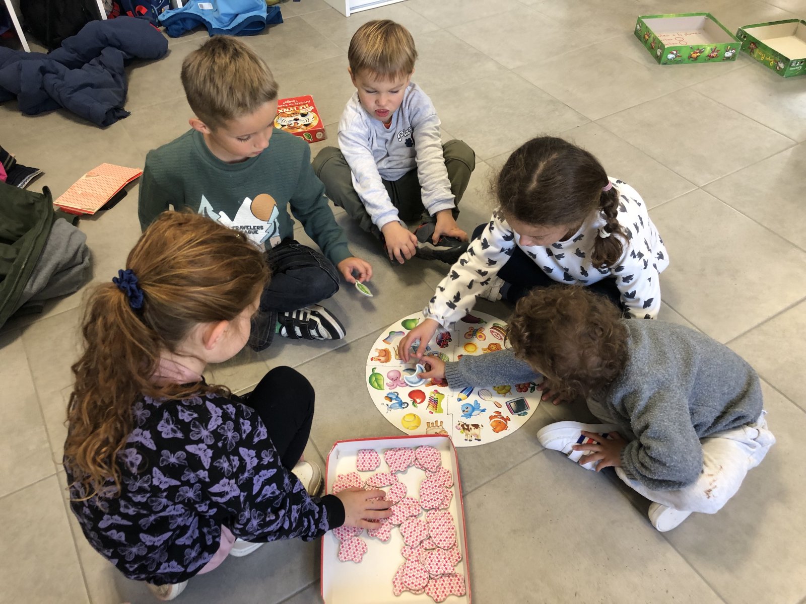 Ce matin, nous sommes allés dans la classe de Laurence pour un moment de jeux partagés.