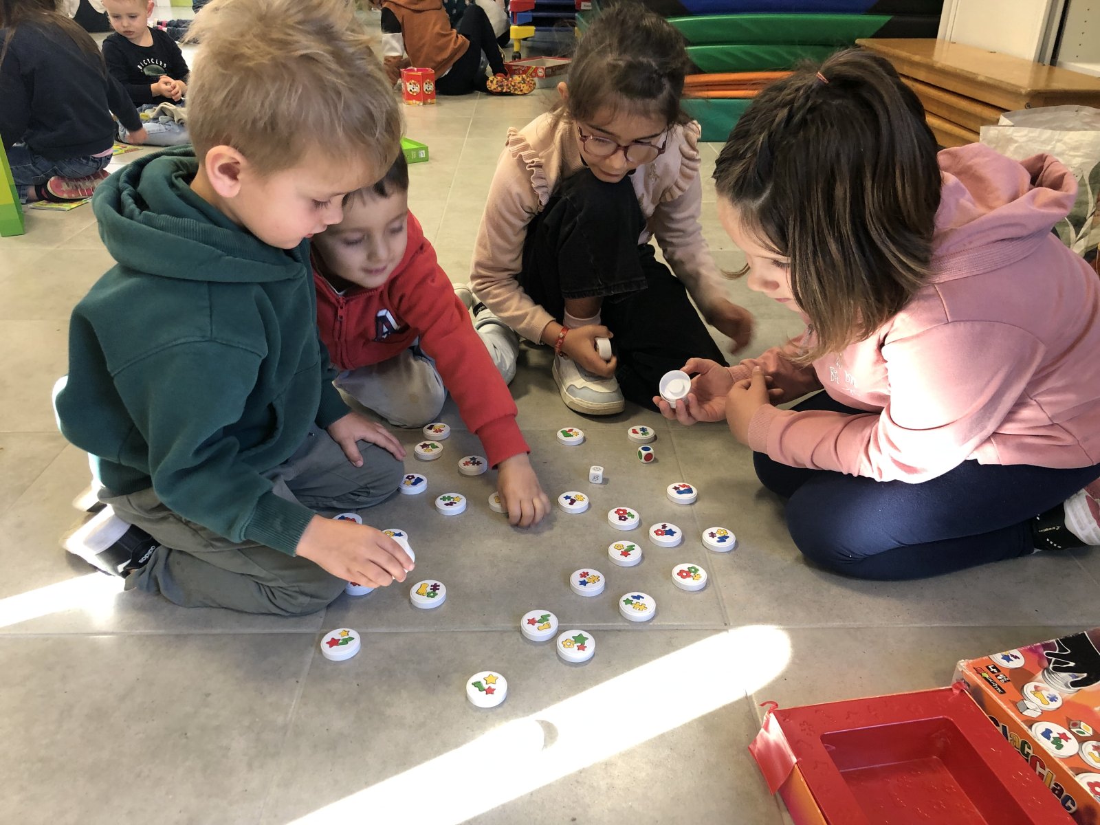 Ce matin, nous sommes allés dans la classe de Laurence pour un moment de jeux partagés.